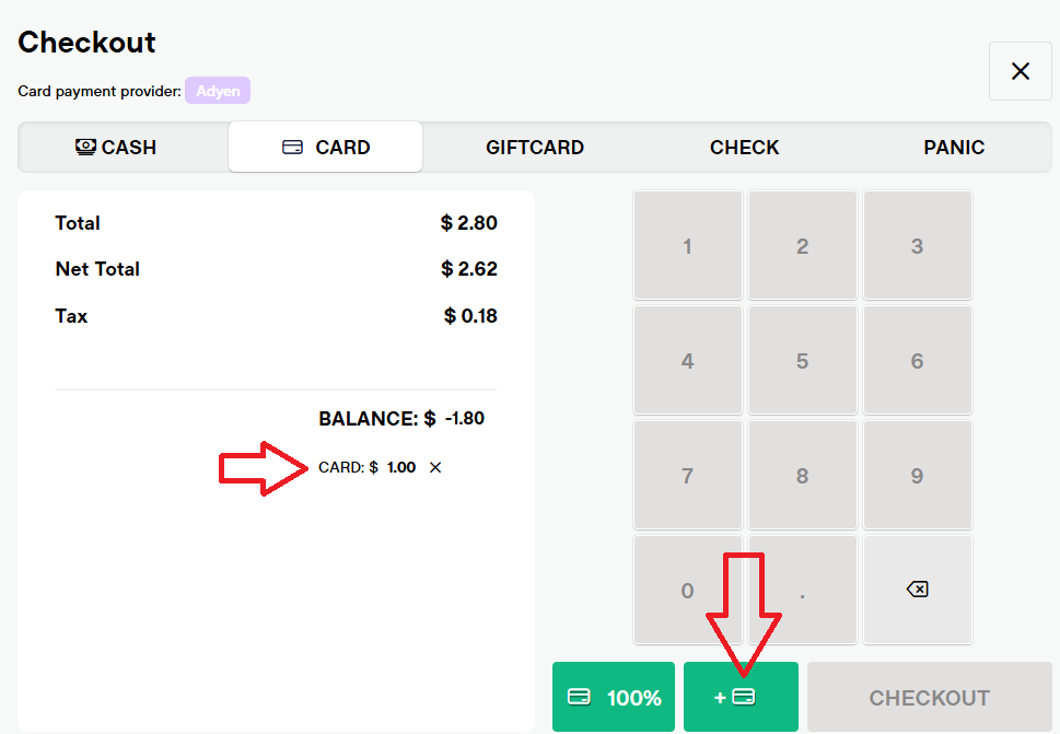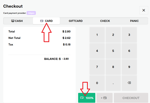 - Select 100% to send the full transaction total to the terminal (card reader)