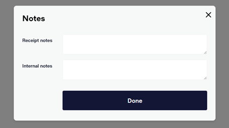 This function will be used when recording any specific information that may be helpful in the future if the transaction was unusual or you think you may need to find it later (think strange accounting situations). These notes are only visible when the receipt is retrieved in the back office.