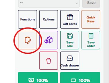 At any point during a sales transaction, you can select the small clipboard icon in the bottom right(under the “Functions”button)