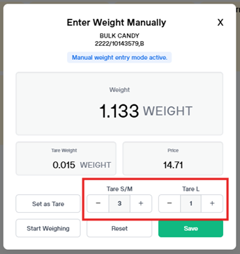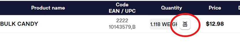 *If an error was made ringing the candy (or tares), you can select the small image beside the weight on the line item and re-enter your amounts.