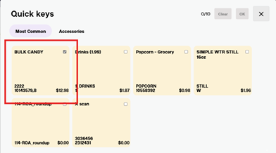Select the save button once you have the weight and the correct tares entered. You will need to select OK in the upperright-hand corner of the Quick Keys menu, once selected you will be returned to the POS screen and the candy will be added to the sale.