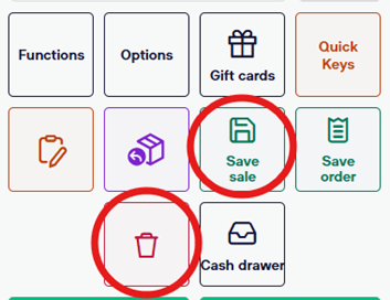 To save a transaction, select the “Save Sale” icon on the bottom right of the sales screen. This will automatically save everything you have scanned, discounted, etc. (Saved sales will be clearedeach night)