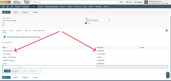 - Here you can see that we are changing the Purchase Price field and the New Value is $15.00, we are also changing the season from DEAD to SO